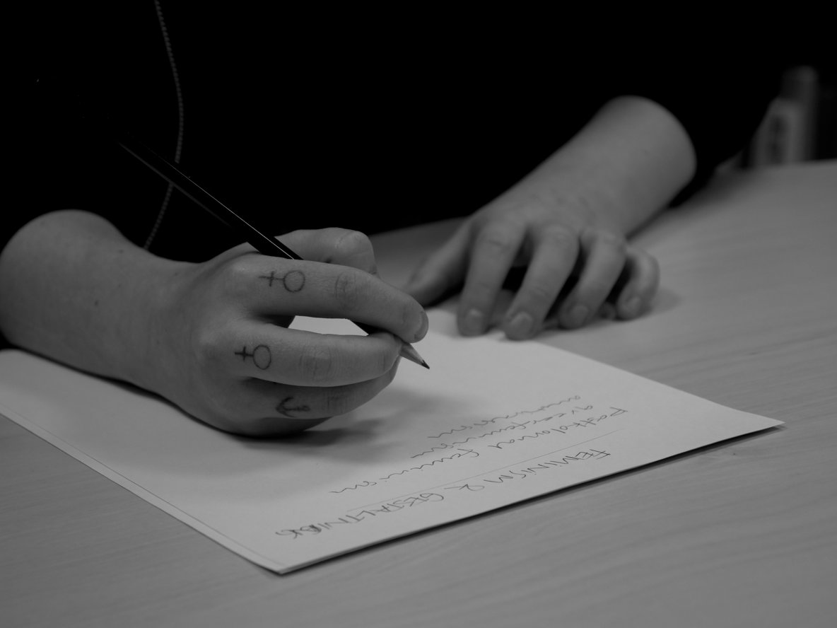 Feminism & gestaltning riktar sig till dig som är intresserad av feministiskt förändringsarbete. Under kursen studerar vi olika inriktningar inom feminismen – t.ex. postkolonial feminism, socialistisk feminism och queerfeminism – och vad de säger oss om samhället. Hur skapas och upprätthålls maktstrukturer? Vad betyder intersektionalitet? Och hur kan vi använda skapandet som ett verktyg för att skapa förändring? Under terminen arbetar vi i olika teman där du och dina kurskamrater ifrågasätter, diskuterar och utvecklar era tankar genom olika former av gestaltning. I mötet mellan feministisk teori och kreativa uttryck öppnar sig ett annat sätt att erfara, utforska, använda och göra kunskap. Genom bland annat läsning, skrivande, film, föreläsningar, workshops och diskussion analyserar vi makt ur ett kritiskt perspektiv och undersöker hur vi kan göra motstånd.