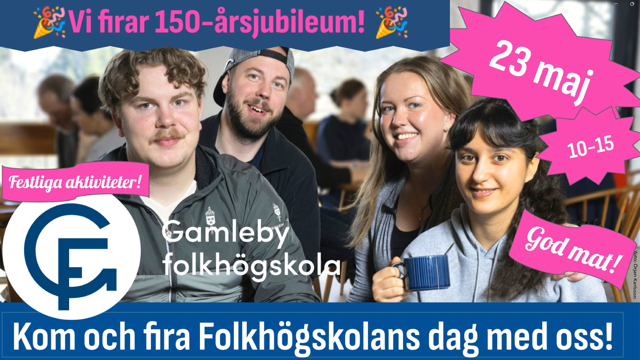 I år fyller Gamleby folkhögskola 150 år – en av Sveriges äldsta folkhögskolor och vi är en självklar del av Gamleby med andra skolor som grannar och hav, berg och skog i närheten. Det är en miljö som ger både lugn och inspiration – och ny energi!